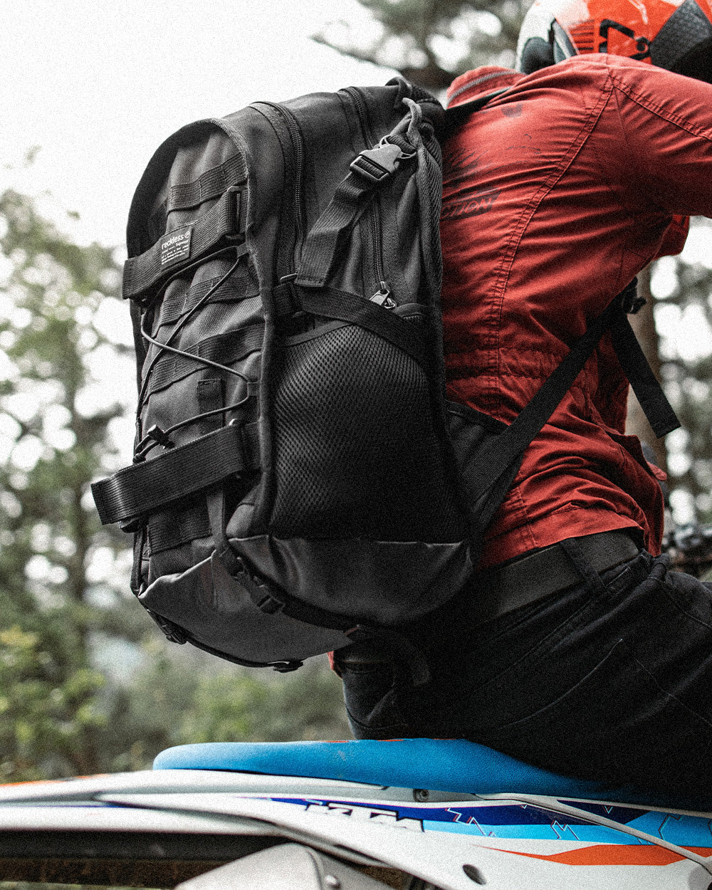 Large size, multi compartment design, curated for packing much stuff but organized. Keeping you geared for short day excursion, handy straps for easy access.