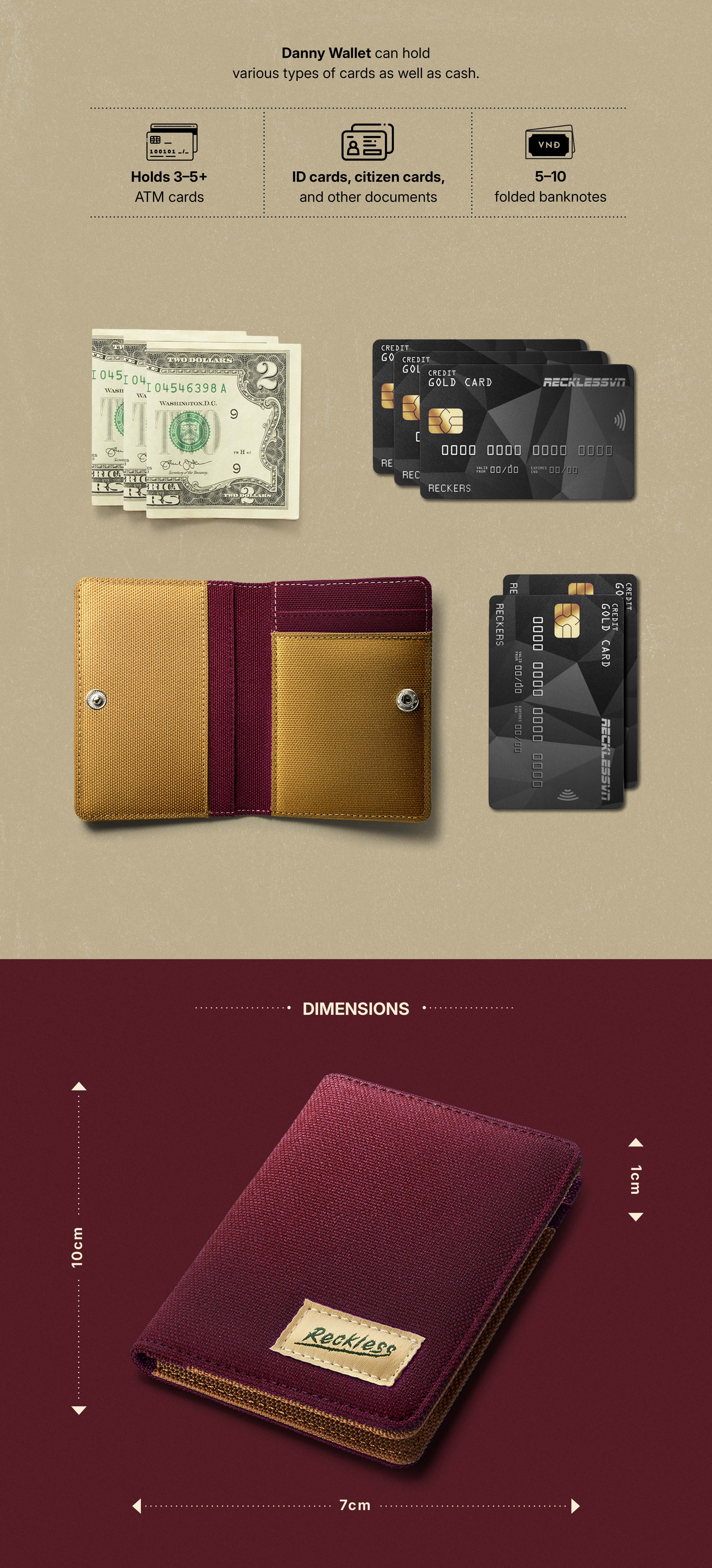 Recklesstripwear designed the Danny Wallet with one goal: strip away the excess and keep only what matters. This slim vertical wallet is crafted for everyday simplicity, giving you space for cards and folded cash without bulk.