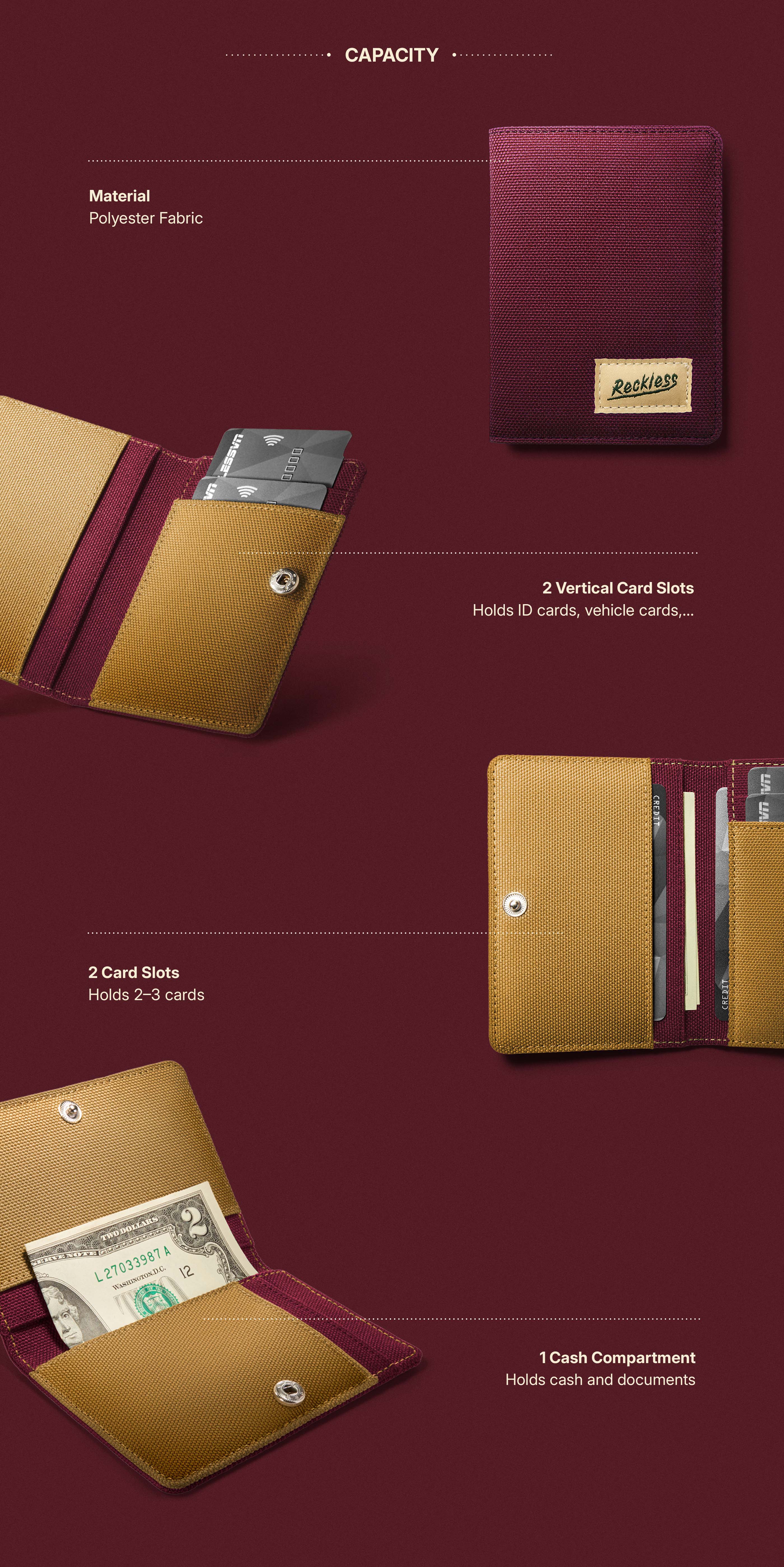 - - Can hold 3-5 cards; 5-10 folded bills