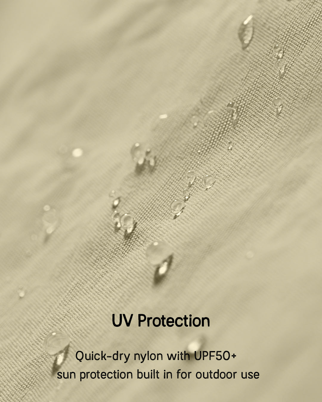 - - Main fabric: 100% nylon with UPF 50+ sun protection, water-repellent, and quick-drying