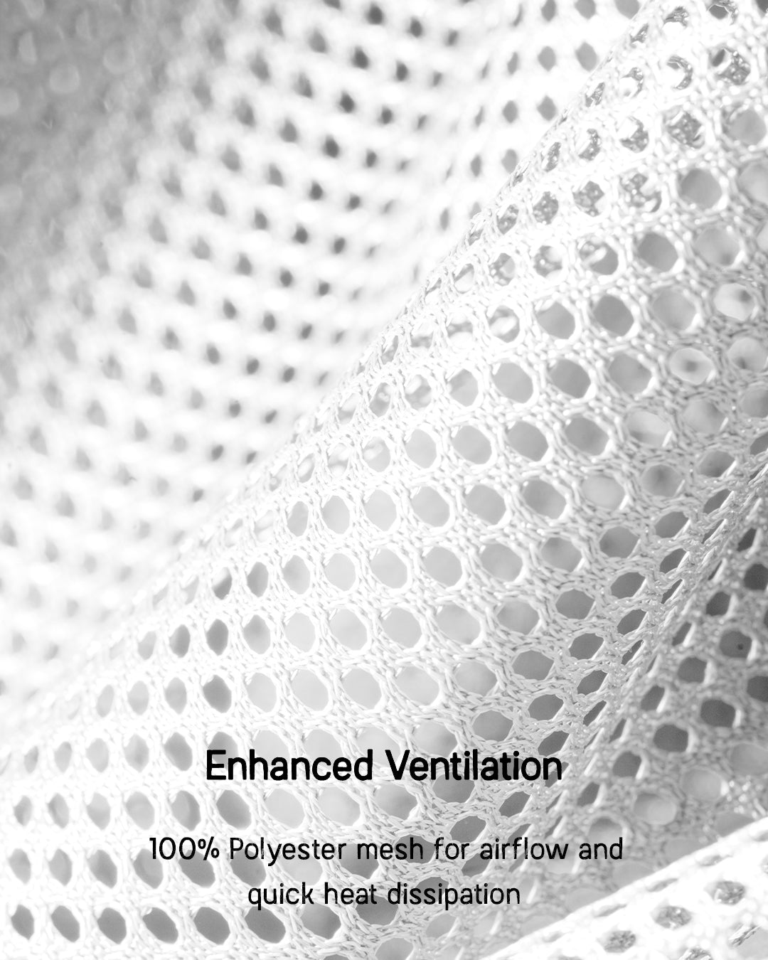 - - 100% polyester mesh for breathability, heat dissipation, and enhanced airflow